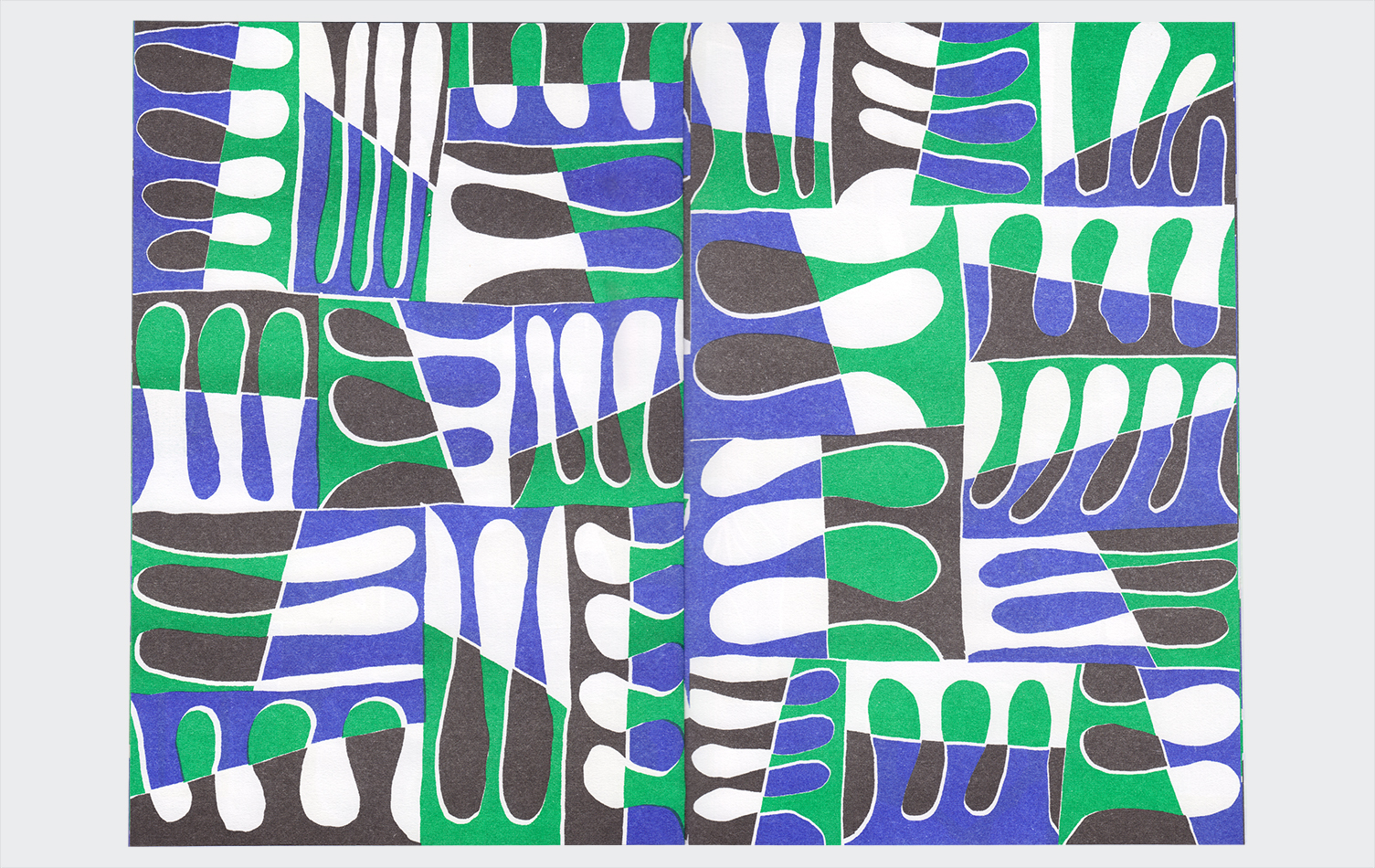The zine presents a collection of shapes that have been used in Tomtyve’s commissioned work. The compositions come directly from the scanner bed. 5x8”, 16 pages, 1C Risograph, 2019. Edition of 50.